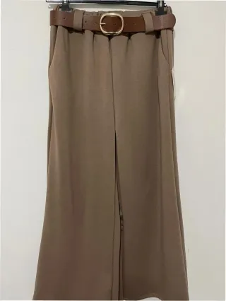 Pantalón largo de corte ancho y estilo moderno. - Diseño de pierna ancha. - Incluye cinturón a juego. - Cierre de botones en la parte frontal.