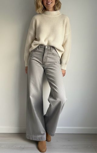 Pantalones vaqueros de Zara de corte ancho y color grisáceo. Un básico versátil para tu armario. - Diseño de pierna ancha. - Cintura con trabillas para cinturón. - Cierre de cremallera y botón.