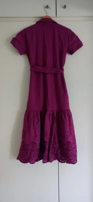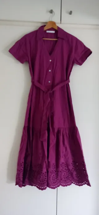 Vestido de la marca francesa Elora, con un diseño elegante y detalles únicos. - Escote V con bordado. - Cinturón a juego con detalles metálicos y flecos. - Manga 3/4. - Bolsillos Precio original ✨️99€