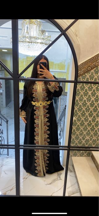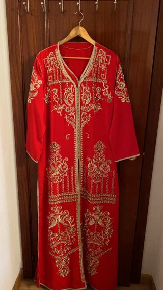 Preciosos caftanes marroquíes, ideales para una boda. Se venden dos piezas: uno rojo y otro negro. Ambos presentan bordados dorados y detalles elegantes. Son prendas únicas y especiales para cualquier ocasión. 50 € cada uno - Confeccionados con telas de gran calidad. - Bordados a mano con hilo dorado. - Diseño tradicional marroquí. - Perfectos para eventos especiales. Se venden sin cinturones