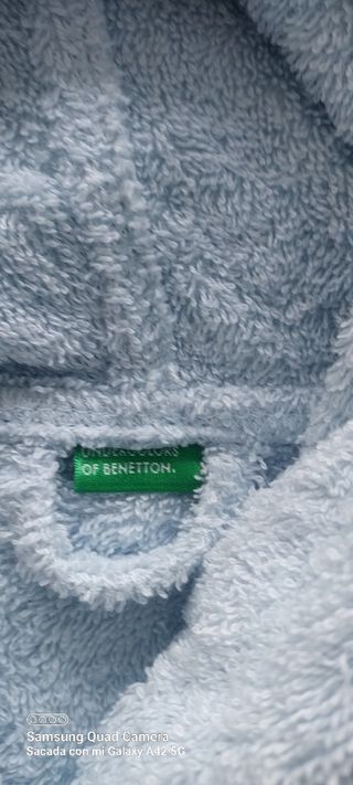 Bata de United Colors of Benetton, talla L/XL, a estrenar y con etiquetas. Medidas: Hombros 53 cm Axila a axila 60 cm Largo 117 cm Cadera 63 cm - Color blanco - Unisex - Logo de la marca bordado en el pecho. - Cinturón para ajustar. - Dos bolsillos delanteros. #albornoz #nuevo #benetton #regalo #navidad #unisex #bata