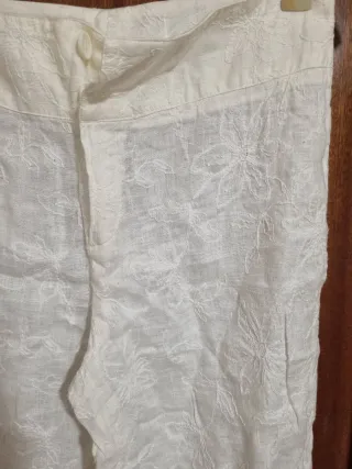 Pantalón de vestir Lasserre con un delicado bordado floral. - Diseño de corte recto. - Tejido ligero y transpirable. - Cintura con trabillas para cinturón.