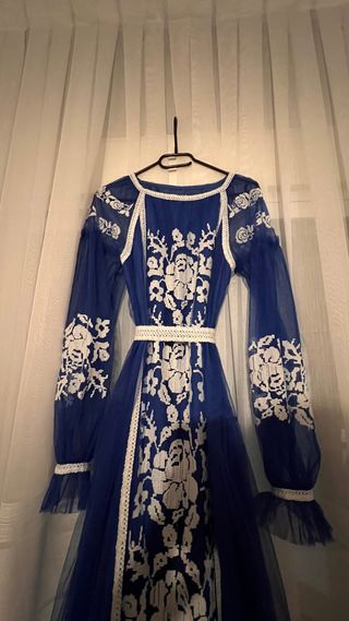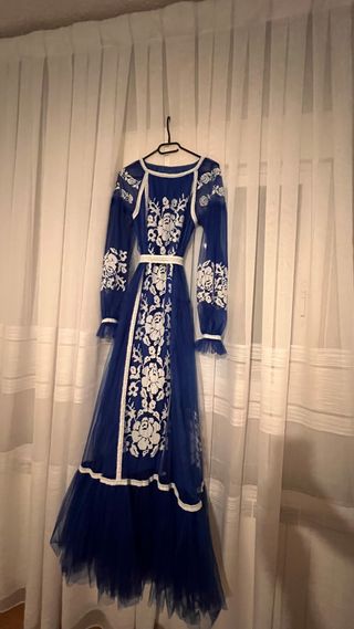 Vestido bordado azul y blanco talla M/L