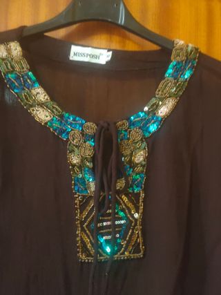 hermosa y ligera blusa confeccionada en viscosa con bordados hechos a mano, Mangas largas, la talla S/S-05 tiene un cinturón fino