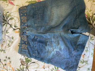 Shorts blancos de Stradivarius con un diseño de bordado étnico en negro. Pone una talla 34 pero realmente es como una 36. - Diseño de bordado étnico en negro. - Bajo deshilachado. - Cintura con trabillas para cinturón.