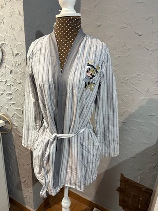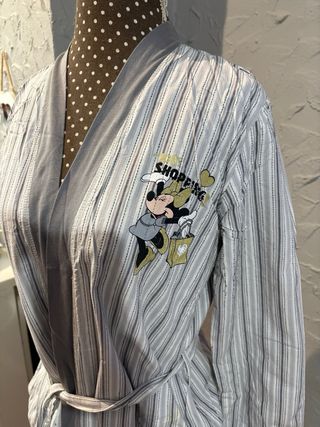 Bata de estar por casa con estampado de rayas y un divertido diseño de Minnie Mouse. - Válida para talla S también. - Estampado de rayas verticales. - Detalle bordado de Minnie Mouse. - Cinturón para ajustar a la cintura.