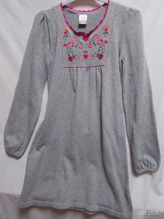 muy nuevo,talla 9/10 , de punto ,con cinturón de la misma tela unido al vestido ,puño elástico ,medidas hombro 29cm. largo total vestido 75 cm.ver y probar sin compromiso