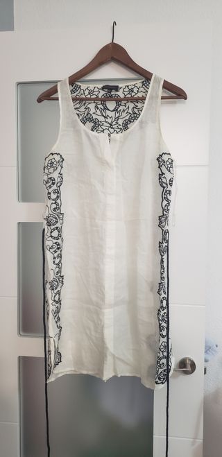 vestido blanco camisero corto con bordados en negro talla 38. con cordón a modo cinturón y apertura de 5cm a cada lado. más artículos similares en mi perfil