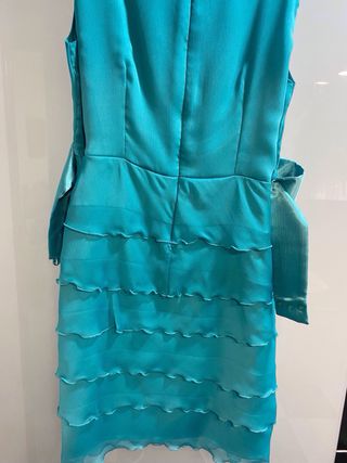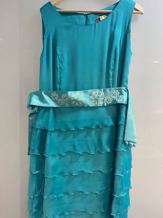 vestido turquesa , un solo uso , cinturon bordado ,costo 180 euros