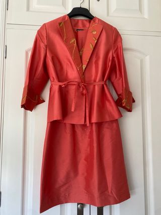 Conjunto chaqueta y vestido coral