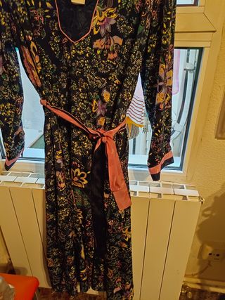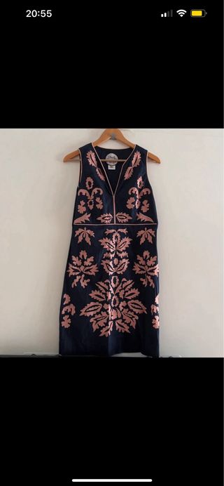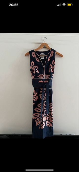 Vestido mujer bordado Almatrichi sin mangas nuevo sin etiquetas. Cinturón bordado a juego. ⭐️Marca: Almatrichi ✅Estado: 10/10. Nuevo sin etiquetas 🏷️Talla: 42-L. Medidas: axila 42 cm x 91 cm largo. 🎨Color: Azul y salmón 🧵Detalles: Cierre de cremallera lateral 📦Envío rápido 24H. 💬Cualquier duda preguntar sin compromiso.