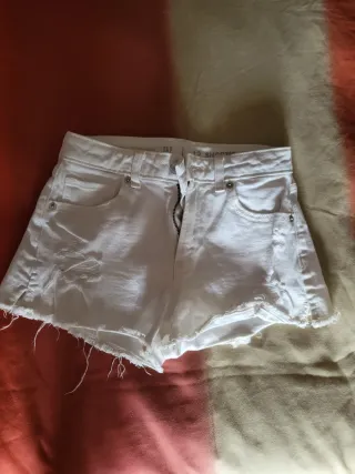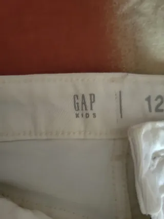 Shorts de mezclilla blancos de la marca GAP. Tienen un diseño moderno con rotos y el borde deshilachado. - Cintura con trabillas para cinturón. - Cierre de cremallera y botón. - Bolsillos delanteros y traseros.
