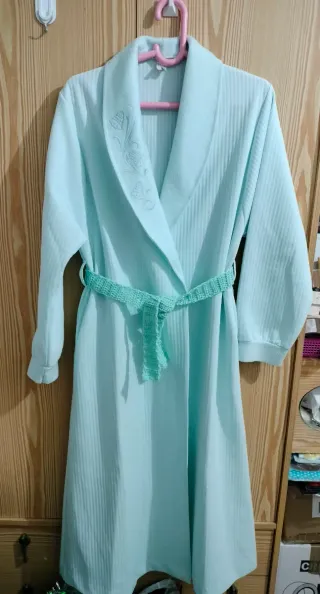 Bata de mujer suave y cómoda, perfecta para uso diario - Diseño con cinturón. - Bolsillos frontales. - Detalle bordado en la solapa. - Medidas ver fotos . Talla 48 SOLO ENVIO. NO SE HACE VENTA EN PERSONA