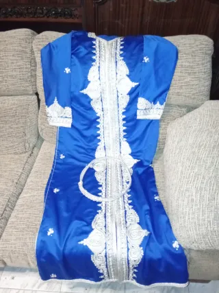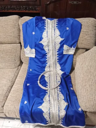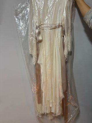 Kaftan artesanal dos piezas, interior vestido en punto de seda, exterior organza estampada con bordados dorados, hecho a mano, y cinturón a juego...sin estrenar, muy bonito para un día especial Ancho 54 cc Largo 141 cc