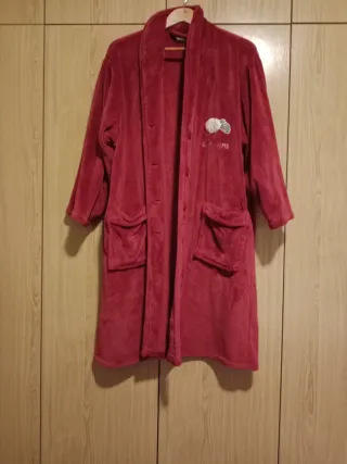 Bata de invierno suave y cálida. - Material tipo polar. - Cierre con botones. - Dos bolsillos delanteros. - Detalle bordado en el pecho. - Sin cinturón aunque tiene presillas.