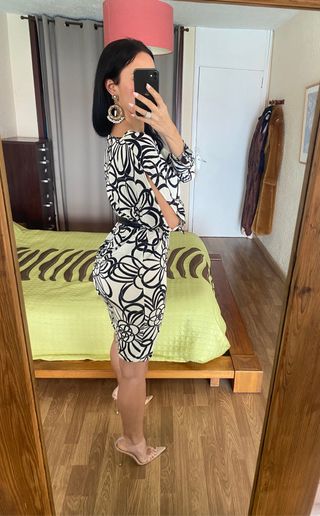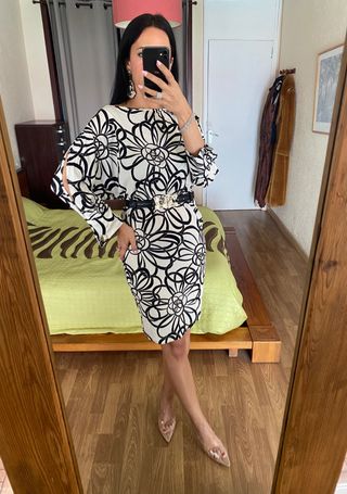 #dresses_anabrotons #size_l_anabrotons #montanablu_anabrotons 🖤 Artículo: vestido estampado floral negro y blanco de la firma italiana Montana Blu talla 48 equivalente a talla L 💖 Características: Manga escotada con botón espejo, escote barco, elástico 🖤 Estado: un solo uso, como nuevo 💖 Consejos de estilo: en las fotos lo he estilizado con cinturón Elisabetta Franchi dorado y stiletto de Asos 🖤 Composición: 90 % viscosa y 10 % elastano 💖 Precio Boutique: 229 € #montanablu #estampadofloral #vestidoelastico #midi #madeinitaly