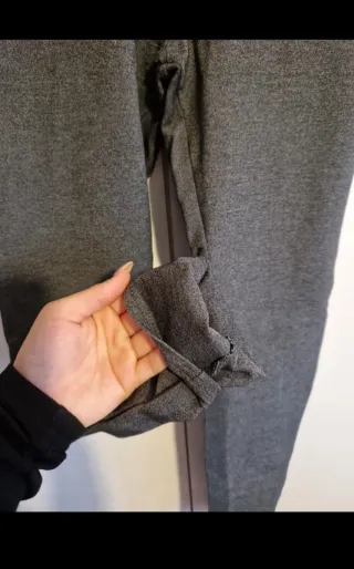 Leggings de color grisáceo con un diseño moderno. - Cinturón ancho de tela negra. - Detalle de tres botones en la parte frontal. - Tejido elástico y cómodo.