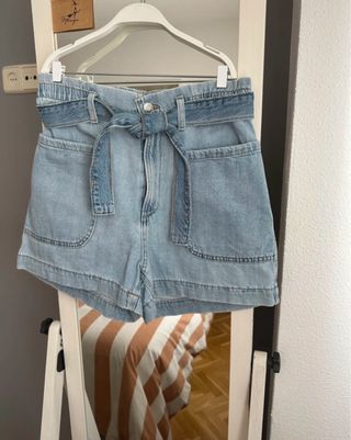 Shorts vaqueros de tela vaquera con cinturón. - Cintura elástica. - Bolsillos delanteros. - Cinturón de tela a juego.