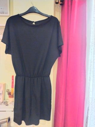 Mono unicolor de manga murciélago con cinturón. Cuello barco. Nuevo. Con cinturón. Color negro. Tejido elástico Ligero
