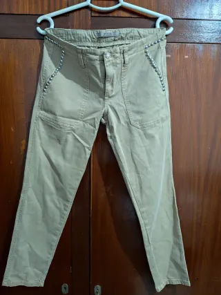 Pantalón de la marca Guess en un bonito tono entre beige y rosa. - Diseño moderno y versátil. - Cintura con trabillas para cinturón. - Cierre de cremallera y botón.