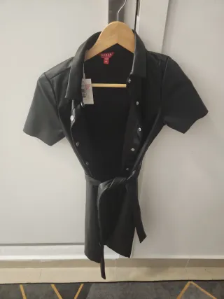 Vestido de Guess con un diseño moderno y elegante. - Confeccionado en material de efecto piel. - Manga corta. - Cinturón para ajustar a la cintura. - Cierre de botones. - Cuello camisero.