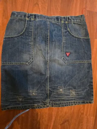Falda vaquera de la marca Guess. - Diseño de cinco bolsillos. - Cierre de botón y cremallera. - Trabillas para cinturón.