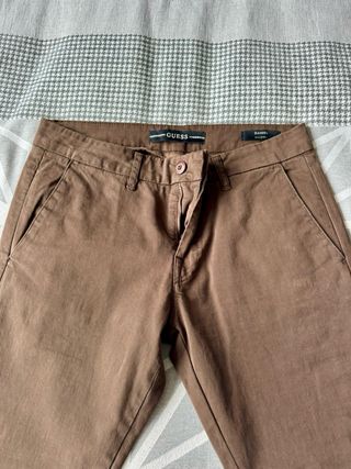 Pantalones de vestir Guess en color marrón. Diseño moderno y cómodo. - Cintura con trabillas para cinturón. - Cierre de cremallera y botón. - Bolsillos delanteros y traseros.
