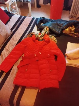 Chaqueta acolchada con cinturón de la marca Guess. -Presenta un pequeño desperfecto (agujero), pero apenas se ve. (está en la tercera foto) - Diseño acolchado. - Cinturón de tela para anudar. - Cuello alto. - Cierre de cremallera frontal.