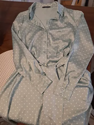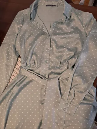 Vestido camisero con un bonito estampado de lunares. - Diseño con cinturón. - Mangas largas con puños abotonados. - Cuello camisero. -Usado solo una vez