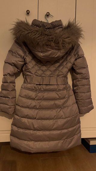 Abrigo acolchado largo de tejido sintético. Cuello alto con capucha. Manga larga. Corte regular. Cierre con cremallera. Talla XS Con apenas uso, está como nuevo Medidas: 90 cm largo Manga 59 cm Contorno 77 cm DETALLES DEL TEJIDO: Acolchado. Repelente al agua y cortavientos. DETALLES: Con cinturón. Capucha con detalle de pelo sintético. ACOLCHADO: Plumón auténtico. COMPOSICIÓN DEL TEJIDO PRINCIPAL: 100 % Poliéster; FORRO: 100 % Poliéster; PELO SINTÉTICO: 80% Acrílico, 13% Modacrílico, 7% Poliéster; RELLENO: 80% Plumón de pato, 20% Pluma. LAVADO: Lavar máx. a 30 ºC. Precio no negociable