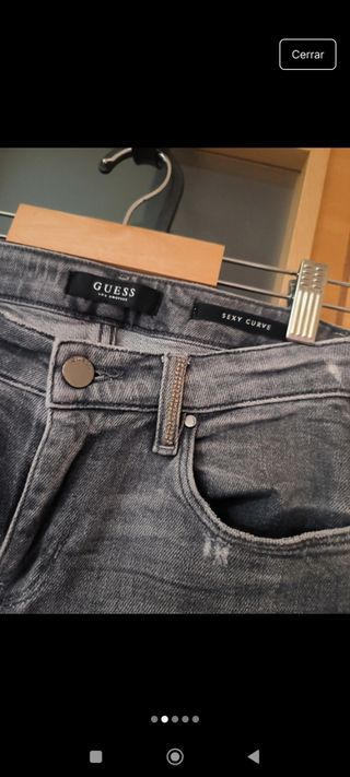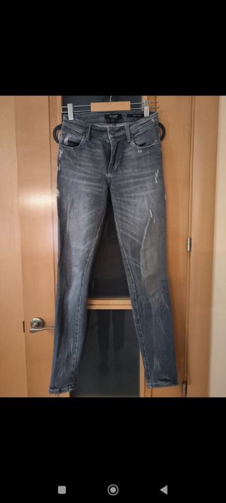 Vaqueros de corte ajustado con un lavado desgastado. - Diseño con rotos y detalles desgastados. - Cintura con trabillas para cinturón. - Cierre de cremallera y botón. Solo envío