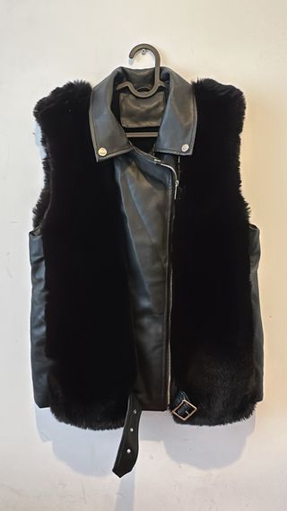Chaleco polipiel y pelo negro
