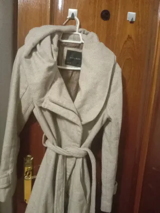 Abrigo elegante de Zara Basic en color beige. Cuenta con un cinturón para ajustar la cintura y un cuello amplio. - Diseño con cinturón. - Cuello amplio y envolvente. - Tejido texturizado.