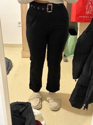 Pantalón negro con cinturón y botones