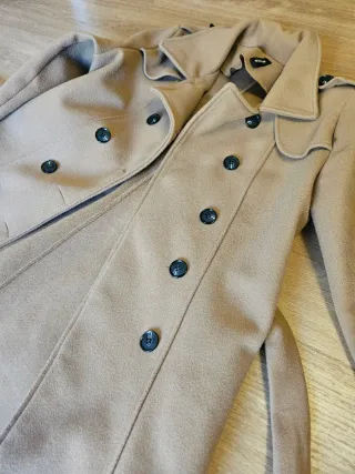 Abrigo largo de color verde alpino, con cinturón. - Diseño de doble botonadura. - Puños ajustables con trabillas. - Cinturón con trabillas y hebilla. precio negociable