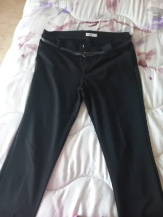 Pantalón de vestir para mujer. - Con dos bolsillos a los lados, una pequeña abertura en la parte de abajo del camal. - Color negro. - Incluye cinturón negro, se ha despegado un trocito, pero con un poco de pegamento....arreglado