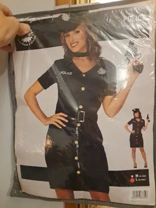 Disfraz de policía para mujer, ideal para carnavales o fiestas. - Diseño tipo vestido. - Detalles de botones dorados. - Incluye gorra , vestido y cinturón Sin estrenar