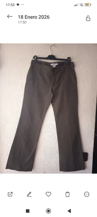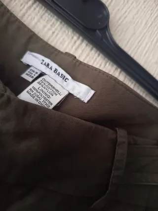 Pantalón de vestir para mujer de la marca Zara, en un favorecedor color verde oliva. Se encuentra en perfecto estado, como nuevo. - Corte recto. - Cintura con trabillas para cinturón. - Bolsillos laterales. - Cierre de cremallera y botón.