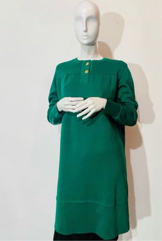 Vestido Yves Saint Laurent de pura lana virgen. También puede ser usado con un cinturón en la cintura. Hecho en Italia Como nuevo, usado solo en pasarela. Talla M. Medidas: Hombros 43cm, longitud 95cm, manga 62cm
