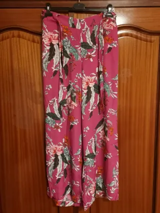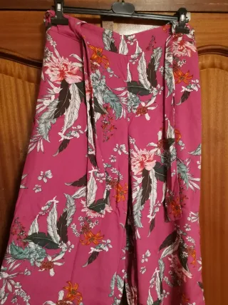 Pantalones largos con estampado floral. Ideales para verano. - Diseño de cintura alta y elástica. - Cinturón a juego. - Pierna ancha.