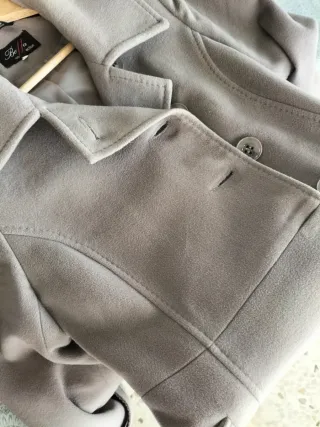 Elegante chaquetón de 3/4. Tiene dos pequeños desperfectos imperceptibles porque los tiene debajo de las solapas de los bolsillos (ver fotos) forros y bolsillos perfectos. Solo venta por envio excepto si hemos tenido contactos satisfactorios podemos quedar. - Diseño moderno y versátil. - Cinturón para ajustar la silueta. - Bolsillos frontales con botones.