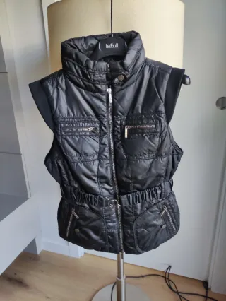 Chaleco acolchado en perfecto estado, muy poco uso. ¡Es precioso! - Diseño moderno y elegante. - Cintura ajustable con cinturón y hebilla. - Bolsillos frontales con cremallera. - Cuello alto.