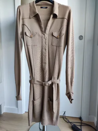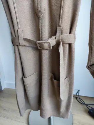 Vestido camisero de lana en color camel. Se encuentra en muy buen estado. - Material: 100% lana. - Diseño camisero con cremallera frontal. - Cinturón a juego. - Bolsillos frontales tipo tapeta. -Perfecto ajuste al cuerpo sin marcar.