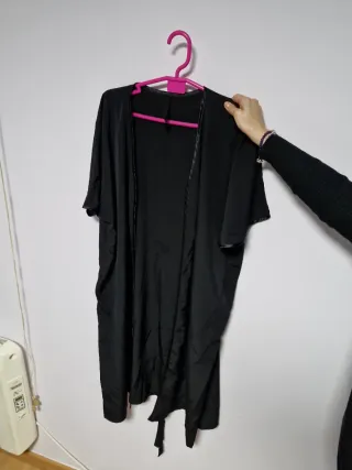 Elegante kimono de la marca PINKO. - Color negro. - Diseño abierto con cinturón. - Mangas amplias.