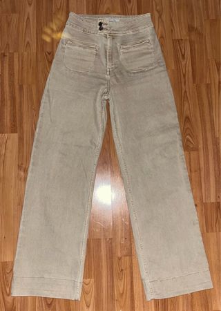 Vaqueros de corte ancho de la marca Zara. - Diseño de dos bolsillos traseros - Cierre de cremallera y botón. - Trabillas para cinturón.