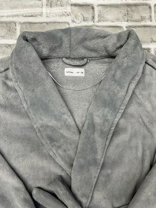 Bata polar de casa en color gris claro con cuello solapa en forma de pico.Cuenta con cinturón lazado del mismo tejido y dos bolsillos laterales.Esta confeccionado en un tejido efecto pelito y es muy suave y gustosa. Medidas: Largo 86cm x ancho de sisa a sisa 54cm x ancho de cintura 52cm x ancho de cadera 56cm Composición: 100% Poliéster 🚚ENVÍOS EN MENOS DE 24H🚚