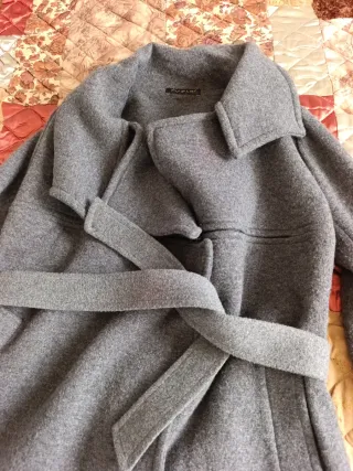 Abrigo lana gris con cinturón