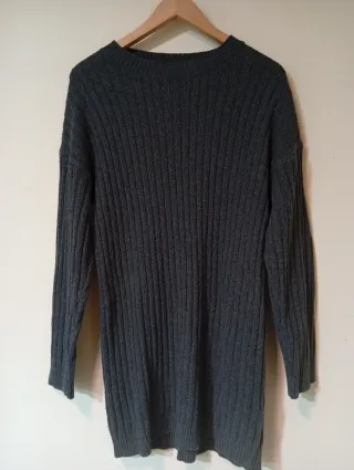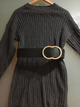 Vestido de punto gris con cinturón