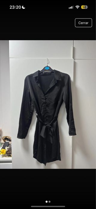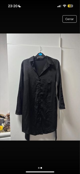 Vestido camisero satén negro mujer