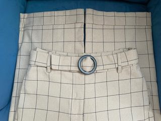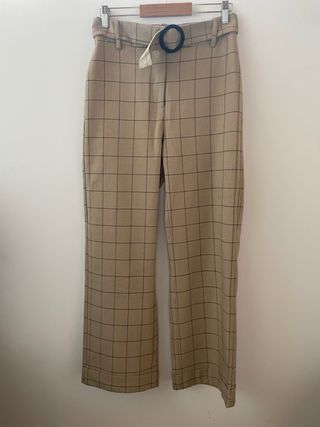 Pantalón de traje con un diseño de cuadros clásico y moderno. Incluye un cinturón a juego para un ajuste perfecto. - Diseño de cuadros - Cinturón incluido - Tiene un corte chulísimo y se ajusta perfecto a la cintura (hace super buen culo jaja) y luego cae ancho por la pierna. - Tiene bolsillos Le quité la etiqueta porque me molestaba pero estoy segura que era Inditex o Mango. Más ropa y accesorios en mi perfil :)